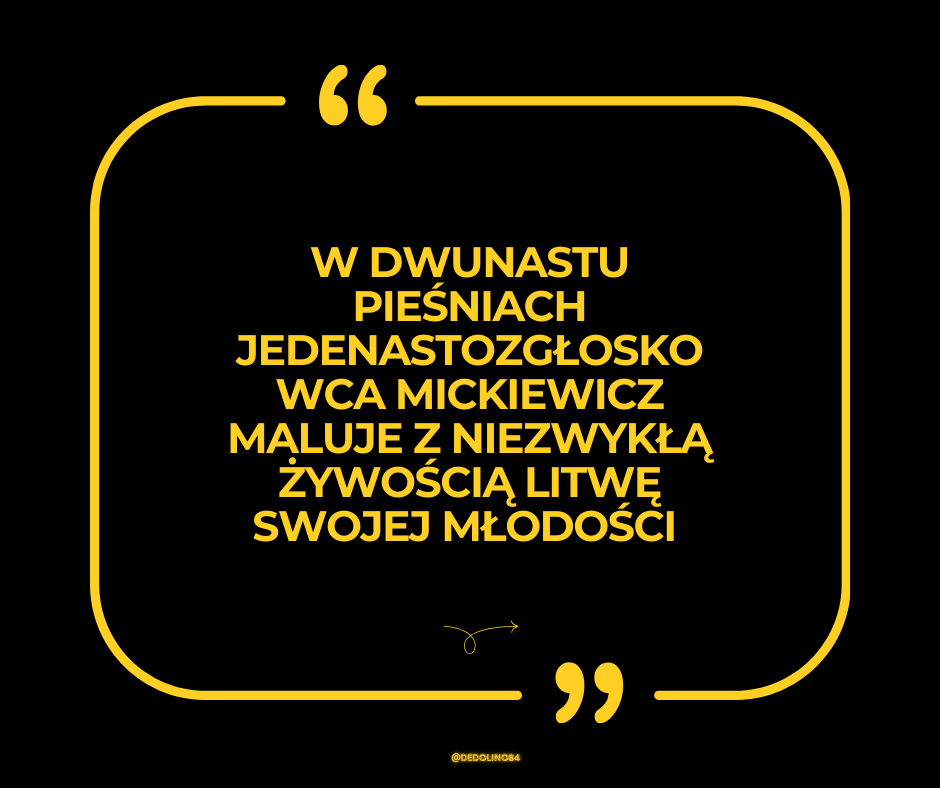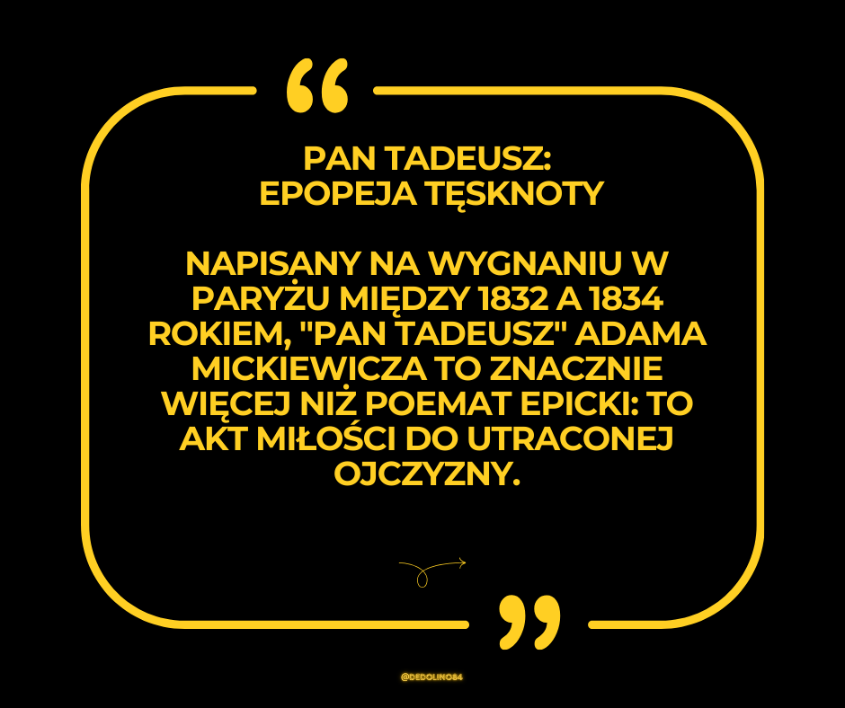Te dwanaście pieśni, napisanych z dala od ojczyzny, stały się najbardziej ukochanym dziełem literatury polskiej i jednym z najpiękniejszych poematów epickich tradycji europejskiej, nieśmiertelnym testamentem kultury i tożsamości narodowej całego narodu.